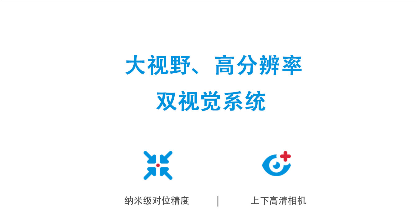 | 对位系统 | 上部相机500万 下部相机1200万;像素精度:0.015mm/pixel 视野:上部39mmx29mm、下部49mmx37mm | |