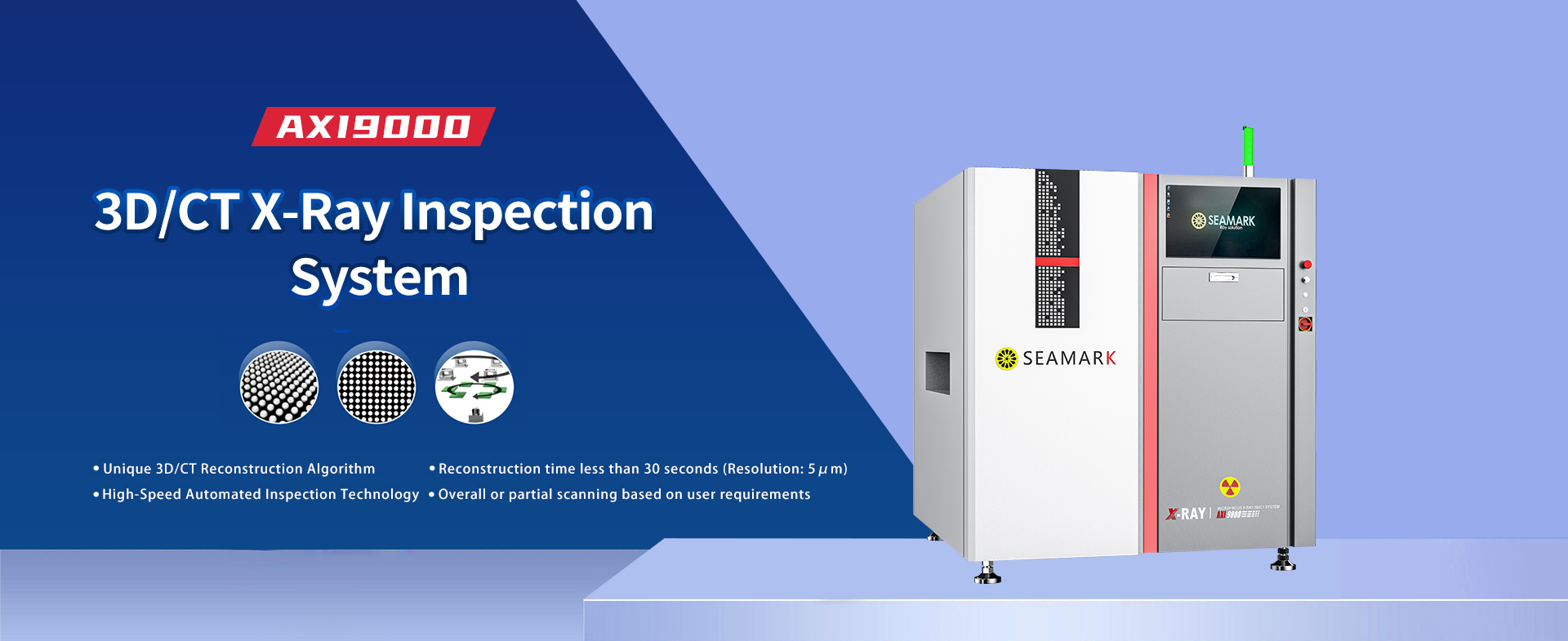 AX19000 is a high-speed CT-type fully automatic inspection system, equipped with innovative self-developed intelligent inspection software, enabling high-speed 3D inspection. It can inspect a wide range of components, including BGA, POP, LGA, QFP, CSP, CHIP, QFN, DIP inserted components, lGBT, and more. lt is capable of detecting defect such as missing components,misalignment, solder bridging, open solder joints, insufficient solder, voids, pillow effect, and other issues.