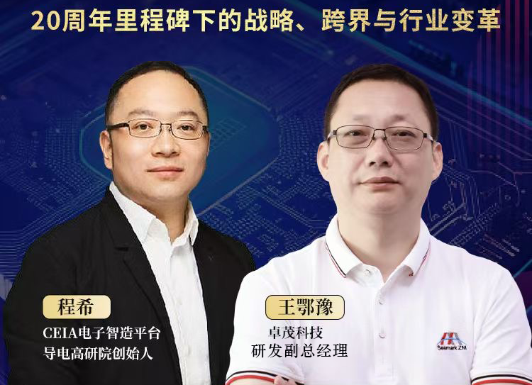 在卓茂科技成立20周年之际,研发副总经理王鄂豫接受CEIA电子制造&导电高研院创始人程希专访。在90分钟的谈话中,王总分享了企业在技术创新、人才培养以及未来规划方面的独到见解。