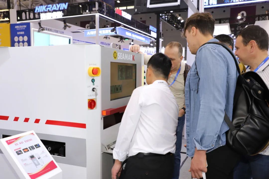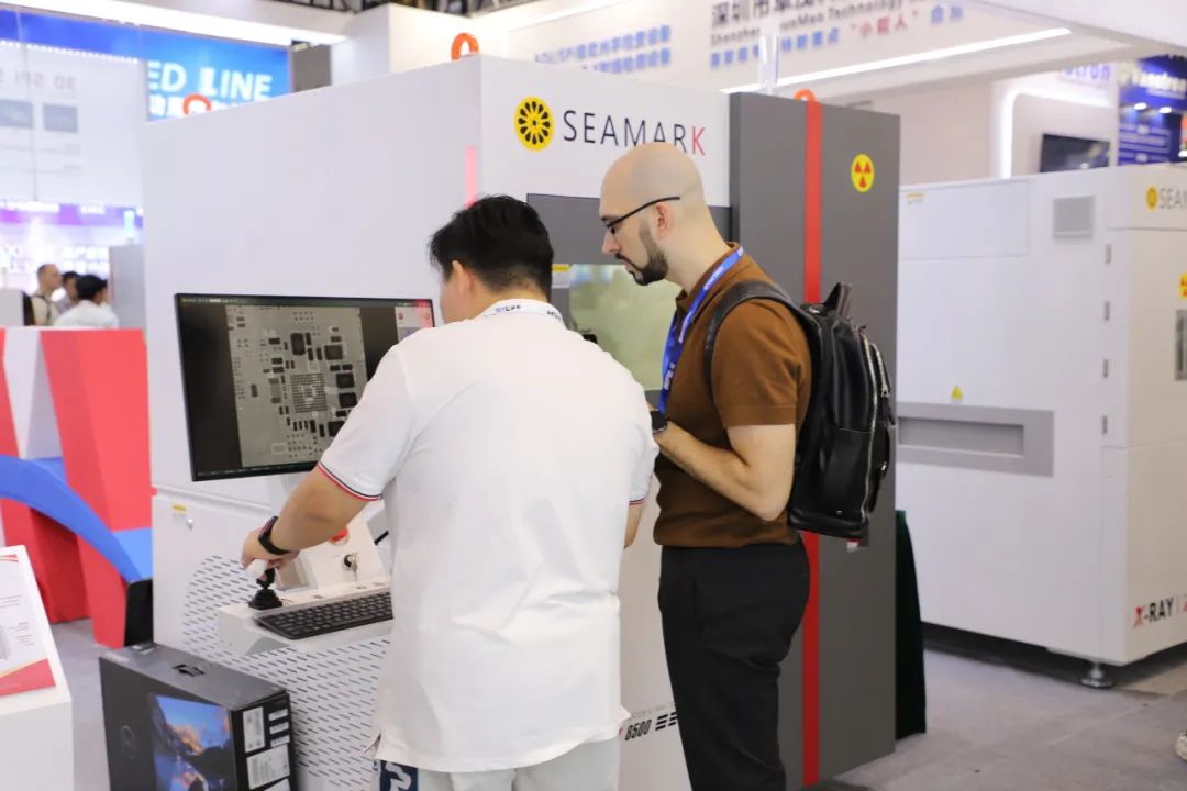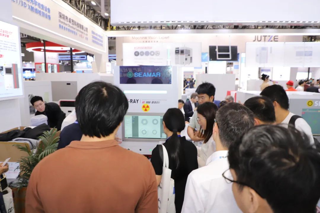 在展台现场,卓茂科技针对电子制造智能工厂带来了全场景应用解决方案。SMT整线检测解决方案:3D SPI 3100锡膏检查机、2D AOI S3020检查机、3D AOI S3030、检查机及高速CT型X射线全自动在线检测设备AXI9000。
