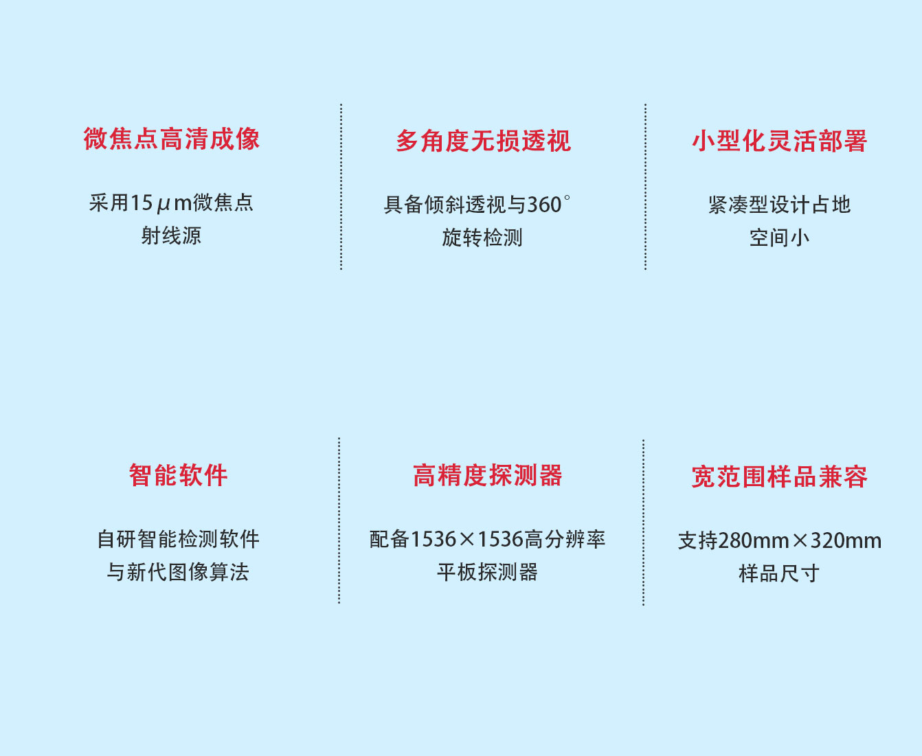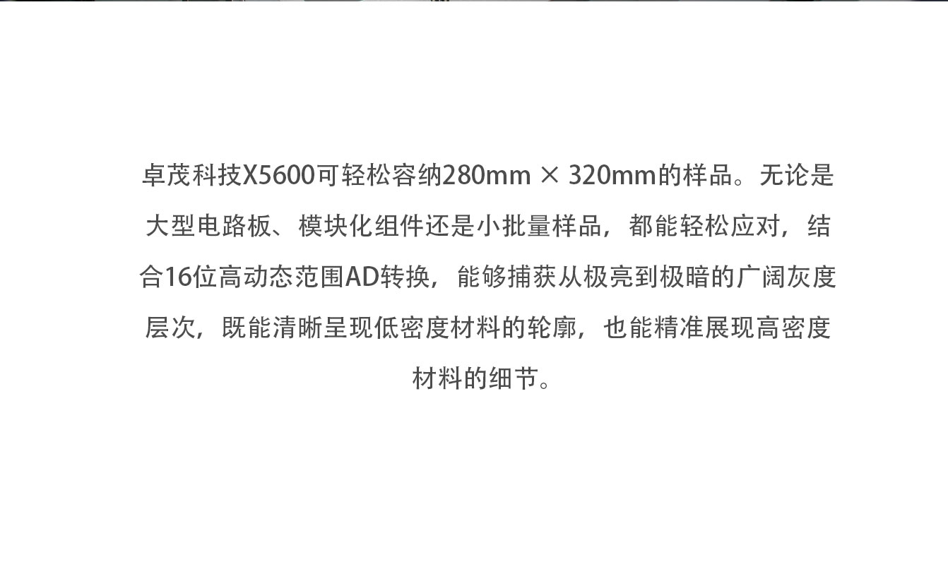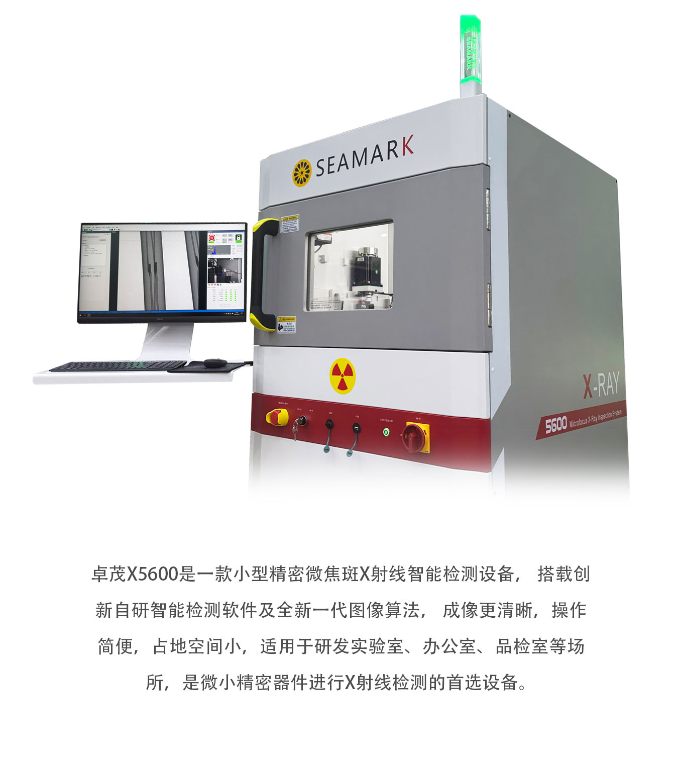 X5600是一款小型精密微焦斑X射线智能检测设备,搭载创新自研智能检测软件及全新一代图像算法,成像更清晰,操作简便,占地空间小,适用于研发实验室、办公室、品检室等场所,是微小精密器件进行X射线检测的首选设备。